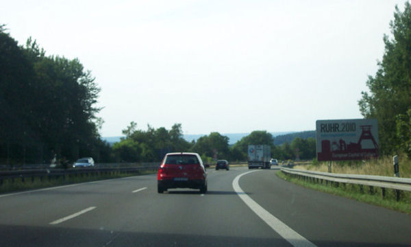 Nahe der Stadtgrenze Lüdenscheid/Hagen ein Touristenhinweis "Ruhrgebiet" mit Verweis auf die "Kulturhauptstadt Ruhr 2010".