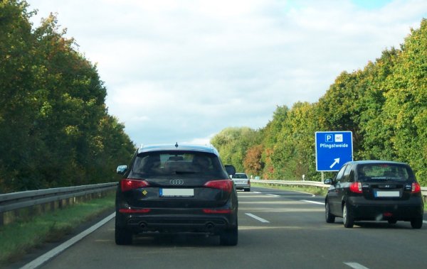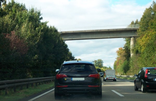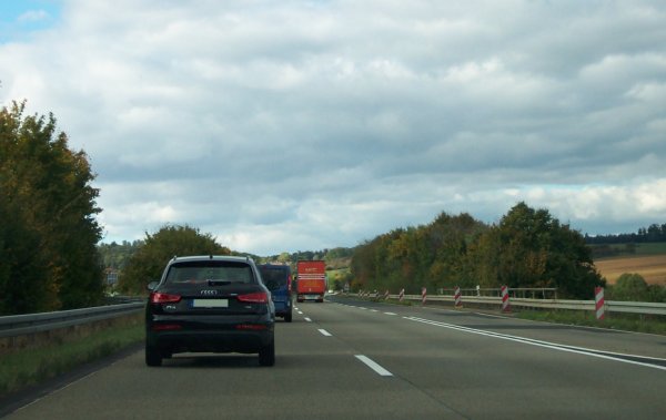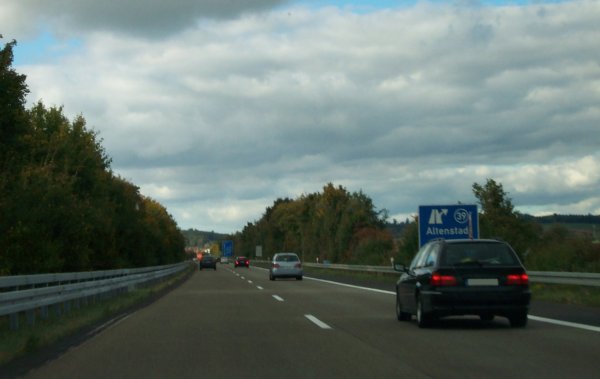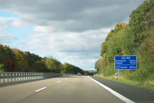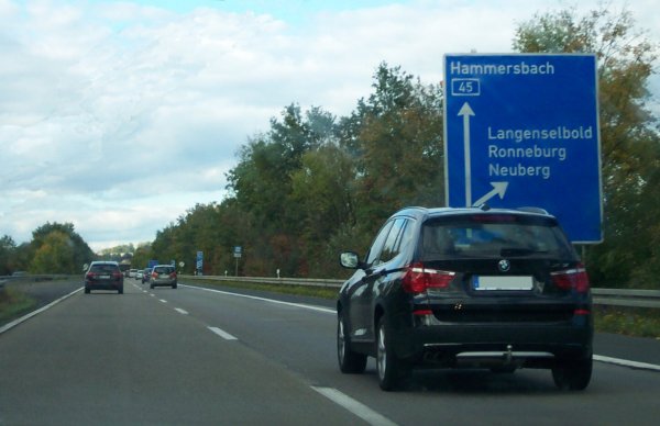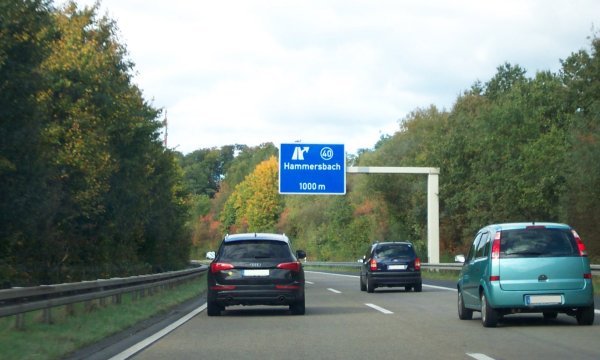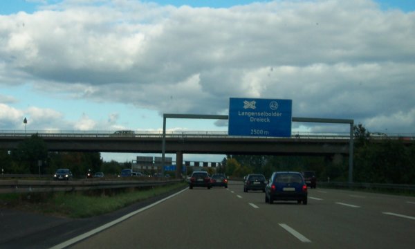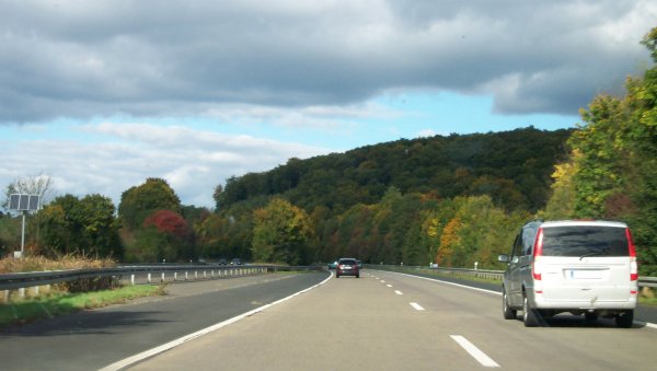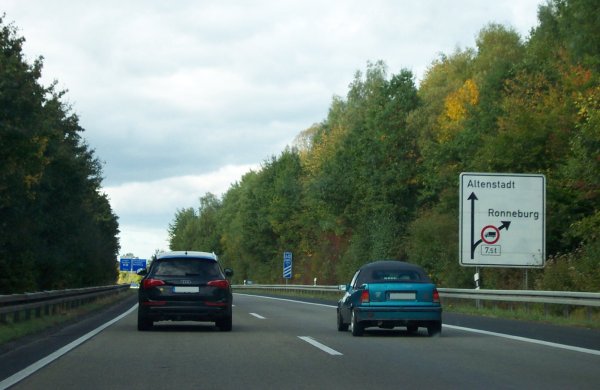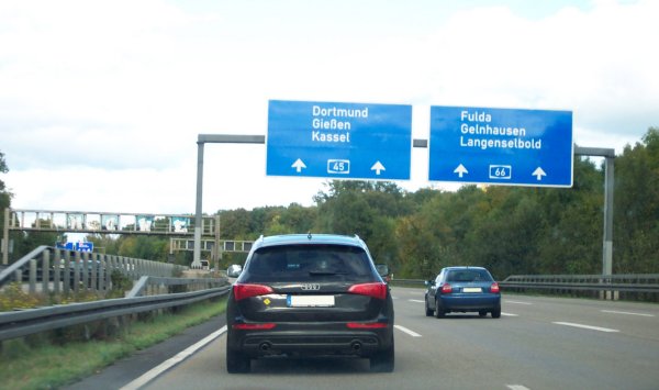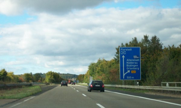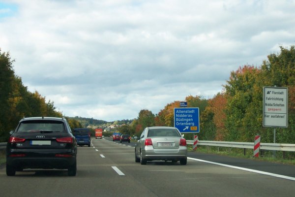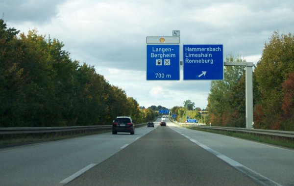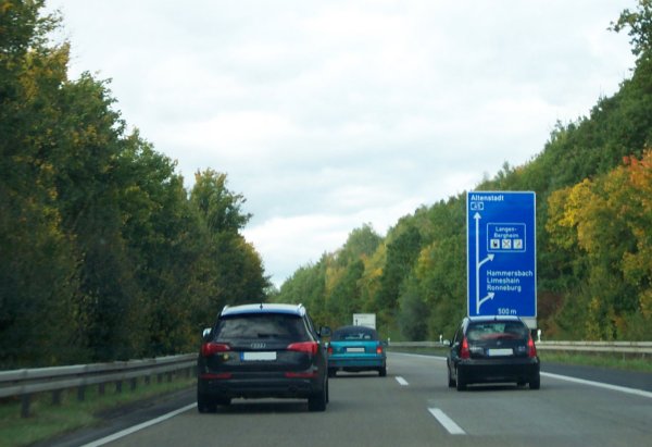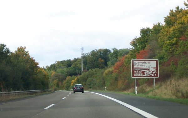 Fahrtrichtung Nord © Svenja L. Junge, 07.10.2012 zurück zu Teil 1 ![]() Beim Zulauf der A 66 ![]() Ankündigung des Langenselbolder Dreiecks. Hier teilen sich die Autobahnen 45 und 66 die Fahrbahn. Daher ist die Autobahn hier achtstreifig... ![]() ...wobei die beiden Autobahnen jeweils zwei Fahrspuren für sich haben, wie dieser Vorwegweiser verdeutlicht. ![]() Wieder ein Vorwegweiser für jede der Autobahnen ![]() Dieser Vorwegweiser kündigt die Teilung der Autobahnen 45 und 66 an. Allerletzte Gelegenheit, die Autobahn zu wechseln. Almählich trennen sich die Richtungsfahrbahnen wieder voneinander. ![]() Noch im Langenselbolder Dreieck (42) kündigt sich die AS Langenselbold-West an. ![]() Autohof bei Langenselbold-West ![]() Vorwegweiser der AS Langenselbold-West ![]() AS Langenselbold-West (41) ![]() Entfernungstafel hinter Langenselbold-West ![]() Abfahrt zum Parkplatz "Auf der Pfingstweide" ![]() Weiter in Richtung Hammersbach ![]() Ankündigung der Raststätte Langen-Bergheim ![]() Talbrücke Marköbel ![]() Weiter in Richtung Hammersbach ![]() Touristenhinweis auf die ArchäologieLandschaft Wetterau ![]() Weiter in Richtung Hammersbach ![]() Ankündigung der AS Hammersbach ![]() Vorwegweiser der AS Hammersbach und der dahinter liegenden Raststätte Langen-Bergheim ![]() Hinweis für LKW über 7,5 Tonnen in Richtung Ronneburg bis Altenstadt auf der Autobahn weiterzufahren. ![]() AS Hammersbach (40) mit Ankündigung der Raststätte ![]() Stellplatzanzeige vor der Raststätte Langen-Bergheim ![]() Zufahrtrampe auf die Autobahn hinter der Raststätte Langen-Bergheim ![]() Erst hinter der Raststätte folgt die nach Anschlussstellen obligatorische Entfernungstafel. ![]() Touristenhinweis auf die Keltenwelt am Glauberg ![]() Touristenhinweis auf die Büdingen Schloss und Festung ![]() Weiter in Richtung Altenstadt ![]() Ankündigung der AS Altenstadt ![]() Vorwegweiser der AS Altenstadt. Autofahrer in Richtung Nidda und Schotten werden derzeit angewiesen, bereits hier abzufahren. ![]() Unmittelbar vor der AS Altenstadt (39) ein letzter Hinweis in Richtung Nidd und Schotten hier abzufahren, da die entsprechenden Zufahrten von der nächsten AS gesperrt sind. ![]() AS Altenstadt ![]() Weiter in Richtung Florstadt ist. ![]() Hinweise auf den Auenverbund Wetterau... ![]() ...und auf Bad Salzhausen weiter zu Teil 3 zurück zur Übersicht |