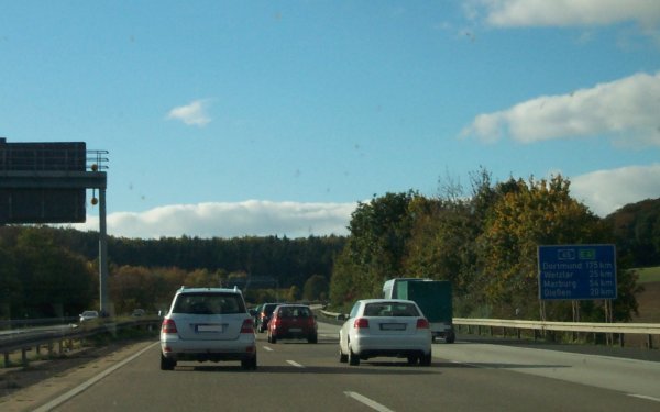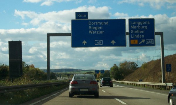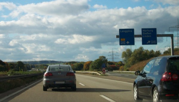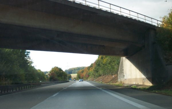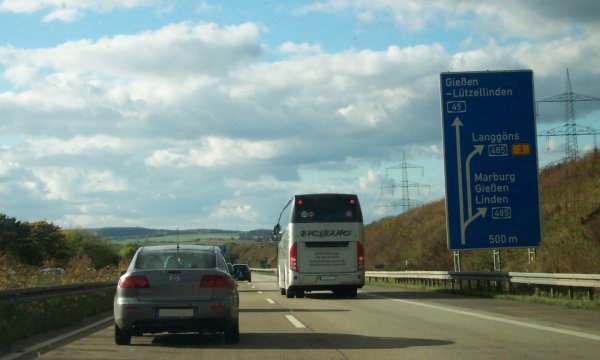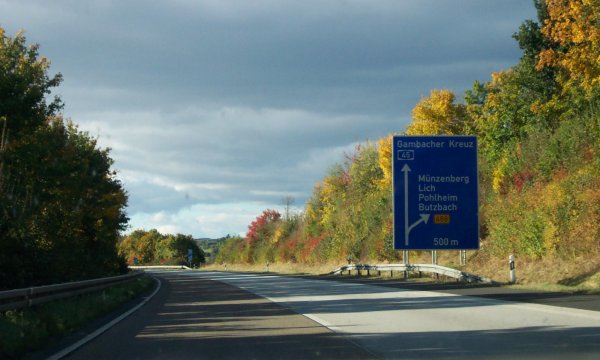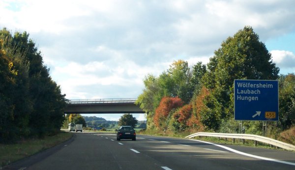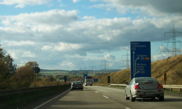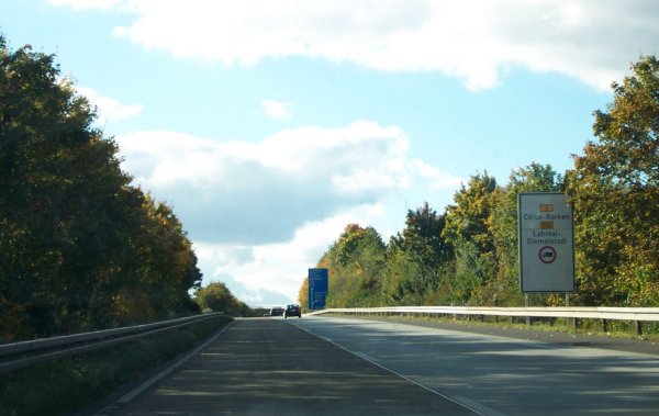 Fahrtrichtung Nord © Svenja L. Junge, 07.10.2012 zurück zu Teil 2 ![]() Ankündigung der AS Florstadt ![]() Vorwegweiser der AS Florstadt. Die Ziele Nidda und Schotten sind durchgestrichen. ![]() AS Florstadt (38), ebenfalls mit den gestrichenen Zielen Nidda und Schotten. ![]() Entfernungstafel hinder Florstadt ![]() Weiter in Richtung Wölfersheim ![]() ![]() ![]() Touristenhinweis auf die Wetterauer Seenplatte... ![]() ...und den Naturpark Hoher Vogelsberg ![]() Weiter in Richtung Wölfersheim ![]() Ankündigung der AS Wölfersheim ![]() Vorwegweiser der AS Wölfersheim ![]() AS Wölfersheim (37) ![]() Weiter in Richtung Münzenberg ![]() Hinweis auf die Burg Münzenberg ![]() Vorwegweiser der AS Münzenberg ![]() AS Münzenberg (36) ![]() Ankündigung des Gambacher Kreuzes ![]() Hinweis auf LKW-Fahrverbote auf der B 3 zwischen Cölbe und Borken, sowie der B 252 zwischen Lahntal und Diemelstadt. ![]() Vorwegweiser des Gambacher Kreuzes ![]() Hier werden LKW mit Zielen im Bereich der vorhin angekündigten Fahrverbote angewiesen, auf der A 5 weiter zu fahren. ![]() Einfahrt in das Gambacher Kreuz (35) ![]() Überflieger des Gambacher Kreuzes von der A 5. Die Richtungsfahrbahnen der A 45 nähern sich wieder einander an. ![]() Kurz hinter dem Gambacher Kreuz... ![]() ...die obligatorische Entfernungstafel. ![]() Talbrücke Langgöns ![]() Weiter in Richtung Gießener Südkreuz ![]() ![]() Vorwegweiser des Gießener Südkreuzes ![]() Ein weiterer Vorwegweiser ![]() Einfahrt in das Gießener Südkreuz (33) ![]() Im Gießener Südkreuz ![]() weiter zu Teil 4 zurück zur Übersicht |