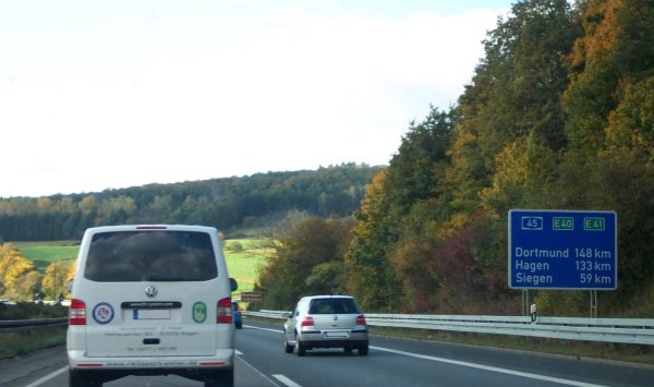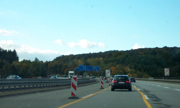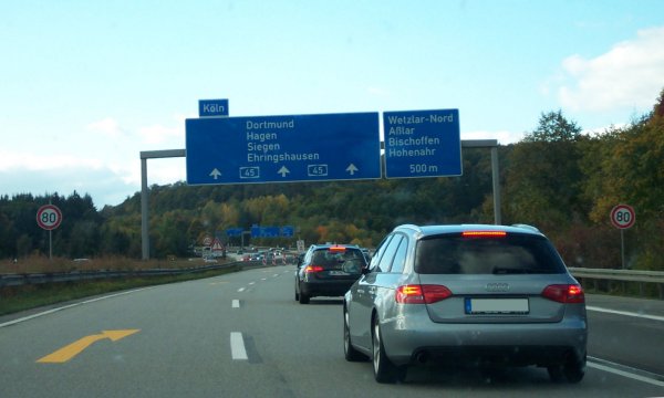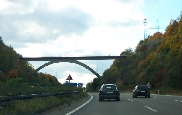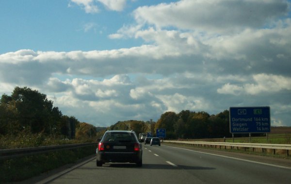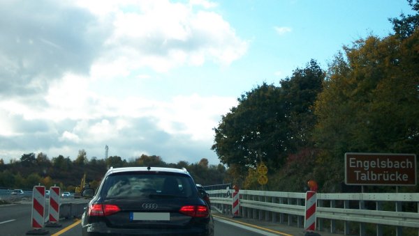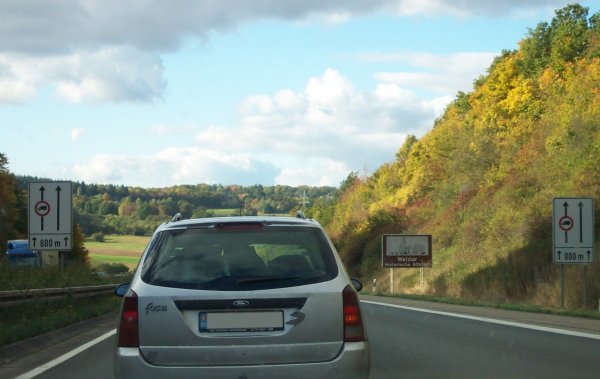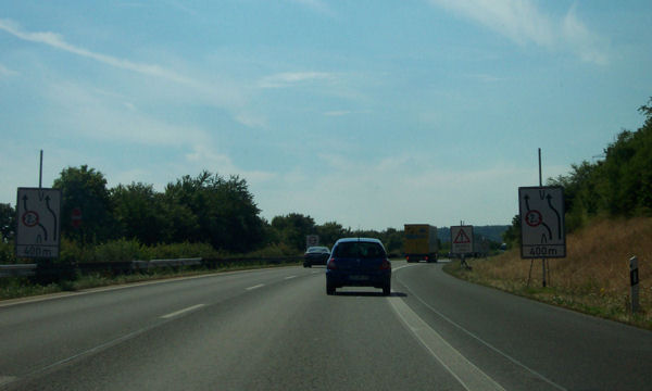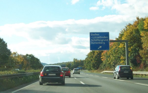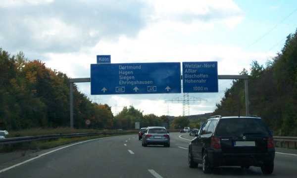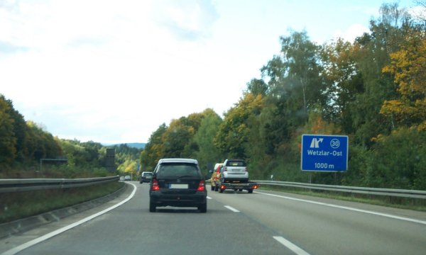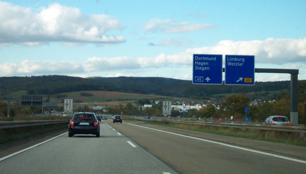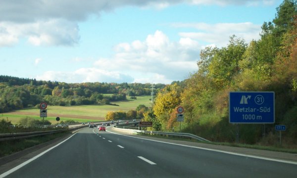 Fahrtrichtung Nord © Svenja L. Junge, 20.07.2010 + 07.10.2012 zurück zu Teil 3 ![]() Ankündigung des Parkplatzes Pfaffenpfad direkt hinter dem Gießener Südkreuz. ![]() Entfernungstafel hinter dem Gießener Südkreuz ![]() Vorwegweiser der AS Gießen-Lützellinden ![]() AS Gießen-Lützellinden (32) ![]() Die nächste Entfernungstafel ![]() Weiter in Richtung Wetzlar ![]() Auf den nächsten 800 m dürfen LKW die Überholspur nicht benutzen. Darüber hinaus wird auf die Historische Altstadt Wetzlar hingewiesen. ![]() Ankündigung der AS Wetzlar-Süd ![]() Talbrücke Münchholzhausen ![]() LKW über 7,5 t und Gefahrguttransporter mit Ziel Wetzlar-Zentrum werden angewiesen, auf der Autobahn zu bleiben. ![]() Kurz hinter Wetzlar-Süd folgt schon die AS Wetzlar-Ost ![]() Vorwegweiser der AS Wetzlar-Ost mit Zusatzschild in Richtung Köln. ![]() Einfahrt in das "Kreuz" Wetzlar-Ost. Die hier autobahnähnlich ausgebaute B 49 war zwischen Wetzlar und Gießen ursprünglich als A 480 bezeichnet. ![]() Im "Kreuz" Wetzlar-Ost (30) ![]() ![]() Entfernungstafel hinter Wetzlar-Ost ![]() Weiter in Richtung Wetzlarer Kreuz ![]() Ankündigung des Wetzlarer Kreuzes ![]() Am Parkplatz Vogelsang ist momentan das WC geschlossen ![]() Hinweis auf das Lahn-Dill-Bergland ![]() Markante Bogenbrücke ![]() Vorwegweiser des Wetzlarer Kreuzes im hessischen Layout ![]() Das nächste Exemplar ![]() Auf der Blasbachtalbrücke kurz vor dem Wetzlarer Kreuz. An der Fahrbahn wird zur Zeit gebaut. ![]() Einfahrt in das Wetzlarer Kreuz. weiter auf der A 480 nach Blasbach ![]() Das Wetzlarer Kreuz ist das einzige, wenngleich unsymmetrische, vollständig ausgebaute Malteserkreuz. Die A 45 überquert es auf der Engelsbach Talbrücke ![]() Auf der Engelsbach Talbrücke ![]() Zufahrt im Wetzlarer Kreuz von der A 480 auf die Sauerlandlinie (Juli 2010) ![]() Entfernungstafel hinter dem Wetzlarer Kreuz ![]() Bornbachtalbrücke ![]() Kurz vor der Talbrücke Bechlingen ![]() Im Sommer 2010 wurde hier noch gebaut ![]() Ankündigung einer baustellenbedingten Verkehrsumlenkung (Juli 2010) weiter zu Teil 5 zurück zur Übersicht |