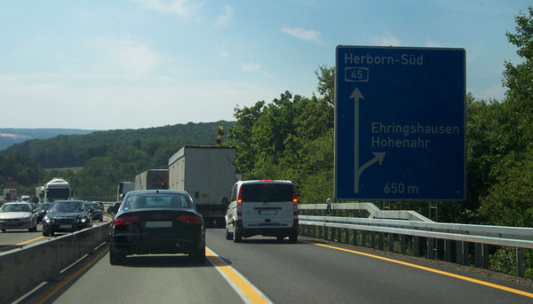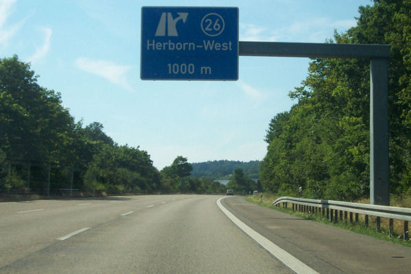 Fahrtrichtung Nord © Svenja L. Junge, 20.07.2010 + 07.10.2012 zurück zu Teil 4 ![]() Einfahrt in den Baustellenbereich ![]() Im Baustellenbereich ![]() Ankündigung des PKW-Parkplatzes Lemper Berg (Oktober 2012) ![]() Kreuzbachtalbrücke (Oktober 2012) ![]() Im Juli 2010 war hier noch eine Baustelle ![]() Vorwegweiser der AS Ehringshausen (28) ![]() Lemptalbrücke ![]() AS Ehringshausen (28) mit ziemlich leerer Tafel ![]() Weiter in Richtung Herborn-Süd ![]() Blick auf die Raststätte Katzenfurt ![]() Ankündigung des 2010 gesperrten Parkplatzes Volkersbach ![]() Talbrücke Volkersbach kurz vor dem gleichnamigen Parkplatz ![]() Auf der Talbrücke Volkersbach ![]() Onsbachtalbrücke ![]() Dilltalbrücke Edingen ![]() Von der Brücke aus gut zu sehen: die Burg Greifenstein ![]() Seitenblick auf Sinn ![]() Abfahrt auf den Parkplatz Hohenrain ![]() Blick vom Parkplatz aus auf die Burg Greifenstein ![]() Weitere Nahaufnahme der Burg ![]() Ankündigung der AS Herborn-Süd vor der Heubachtalbrücke ![]() Ein weiterer Seitenblick auf Sinn, jetzt von der Heubachtalbrücke aus ![]() Vorwegweiser der AS Herborn-Süd ohne Pfeil ![]() Kurz vor der AS ![]() AS Herborn-Süd (27) ![]() Ankündigung der AS Herborn-West (26) ![]() Vorwegweiser der AS Herborn-West im beliebten Hessenstyle ![]() AS Herborn-West (26). Nach einem schweren Tanklastzug-Unfall am 7. Juli 1987 wurde vor der steil abfallenden Ortseinfahrt Herborn eine Notfallspur angelegt. ![]() Ankündigung der Raststätte Dollenberg. Dahinter lugt hinter einem LKW eine Entfernungstafel hervor. ![]() Die besagte Entfernungstafel (Oktober 2012) ![]() Weitere Ankündigung der Raststätte Dollenberg und Ankündigung einer weiteren Baustelle. ![]() Kallenbachtalbrücke ![]() Blick auf die Raststätte Dollenberg weiter zu Teil 6 zurück zur Übersicht |