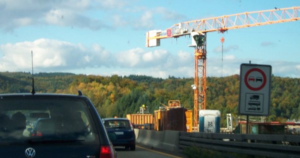 In etwa die gleiche Stelle im Oktober 2012. Der Verkehr im Baustellenbereich fließt jetzt auf der Richtungsfahrbahn Frankfurt/Aschaffenburg Bilder von der Windelbachtalbrücke
