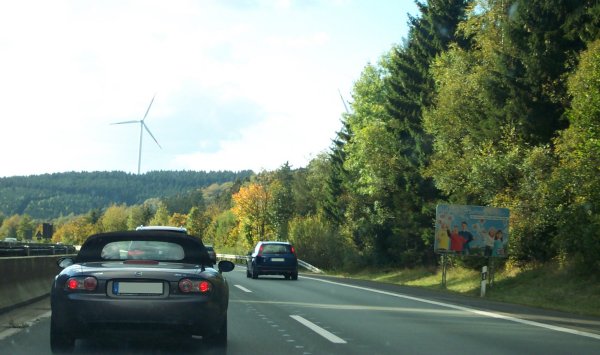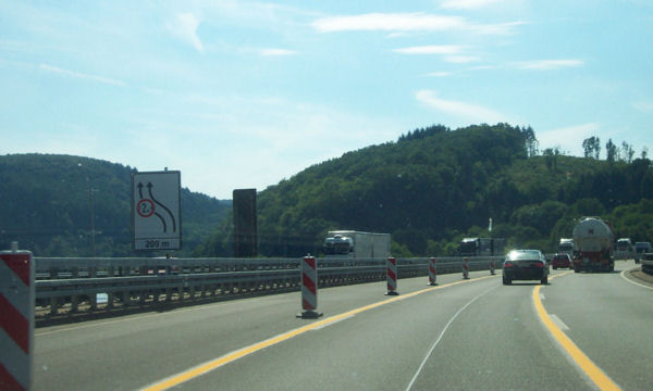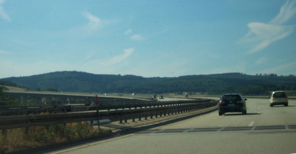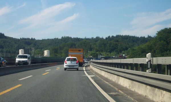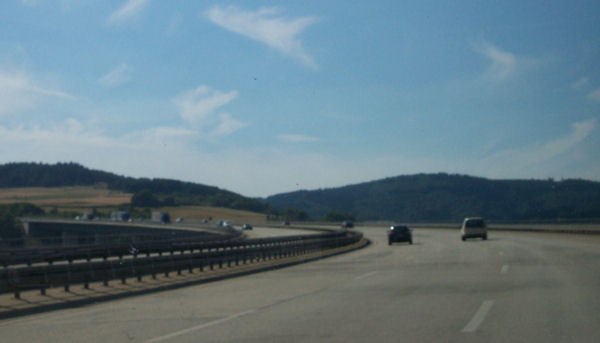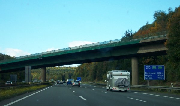 Immer noch auf der Talbrücke Sechshelden, die wie ein leichtes „S" geschwungen ist.