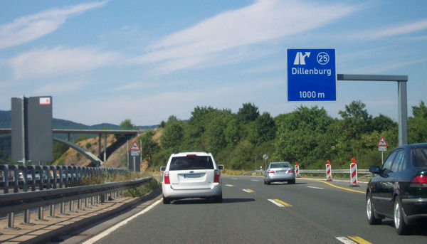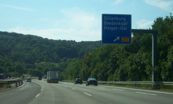 Knapp hinter dem Vorwegweiser der AS Dillenburg
