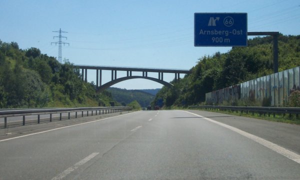 Einfahrt in die AS Arnsberg-Altstadt (65) noch auf der Talbrücke