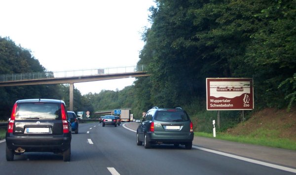 Touristenhinweis auf die Schwebebahn und den Zoo in Wuppertal