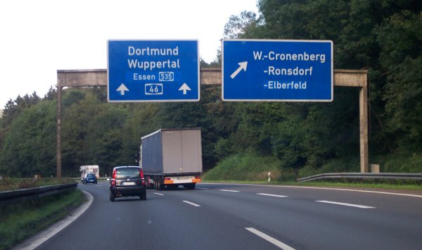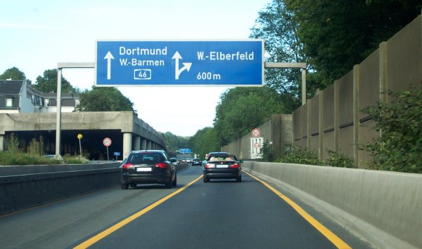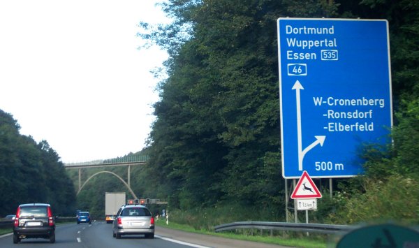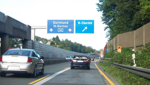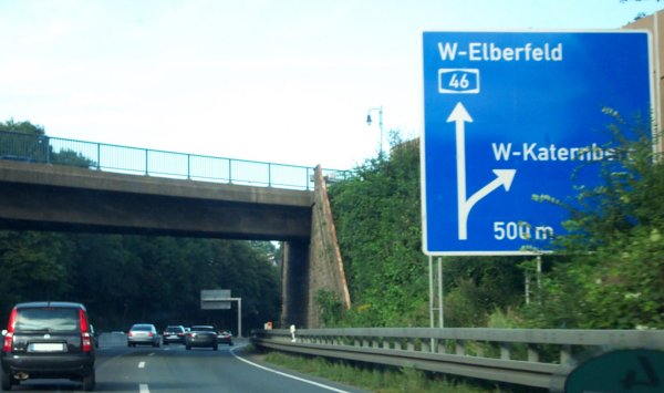 Schlag auf Schlag folgen die Anschlussstellen. Wuppertal-Elberfeld kündigt sich an.