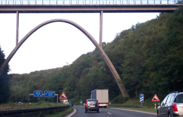 Vorwegweiser des Sonnborner Kreuzes. Weiter im Hintergrund ist bereits die besonders markannte hohe Brücke Sonnenberg zu erkennen.
