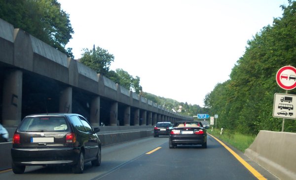 Hier hat die Autobahn halbseitig eine Galerie