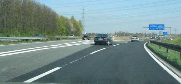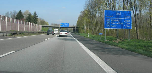 Unmittelbar vor dem Kreuz: Linksausfahrt nach Neuss!