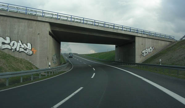 Aus drei mach vier: Markante Schilderbrücke im Kreuz