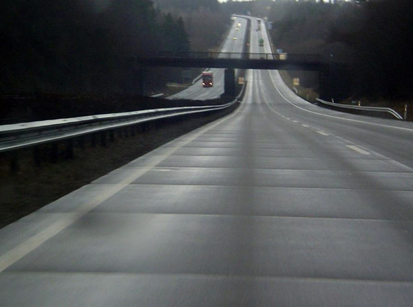 Bei Feuchtigkeit sieht man gut die Fahrbahnplatten