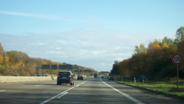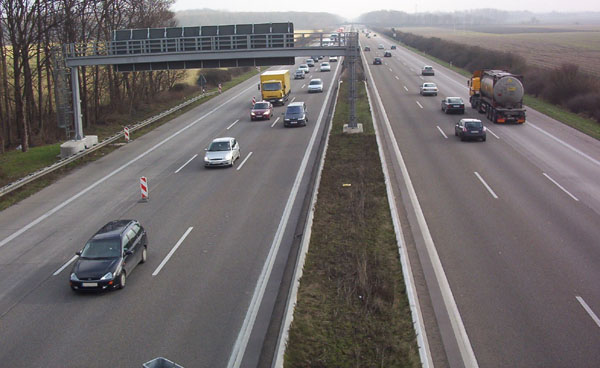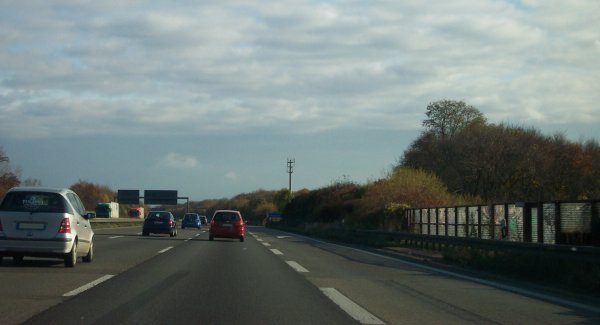 Die selbe Stelle am 08.11.2009. Jetzt hängt hier eine Doppelankündigung der AS 11 am Schildergalgen.