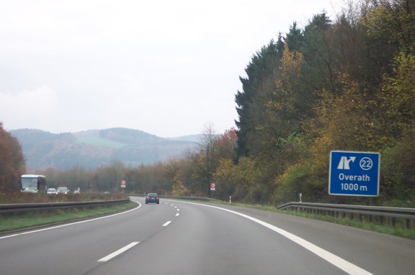 Hinter der AS Overath wird die Raststätte Aggertal noch mal angekündigt.