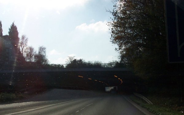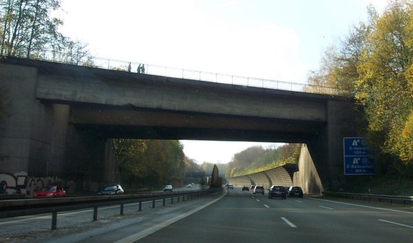 Bei der Brücke der Vollmerstraße über die Autobahn führt diese in den kurzen Tunnel Huttrop. Das Geländer deutet darauf hin, dass die Autobahn hier früher wahrscheinlich im offenen Graben verlief, der später überdeckelt wurde.