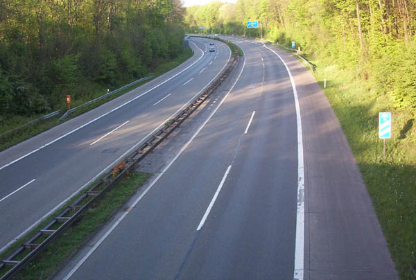 ...hinter der eine Fahrbahntrennung beginnt. Diese ist ein Überbleibsel der ursprünglich geplanten Gabelung mit der A 41. Nach Planungen aus den 1970-er Jahren sollte hier die A 52 enden.