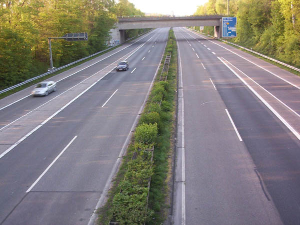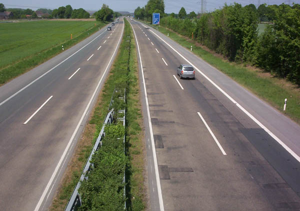 In der Fahrbahntrennung in Richtung Haltern. Diese Brücke über die Pawicker Str. sollte ursprünglich auch die A 41 überspannen, die längst verworfen ist.