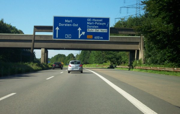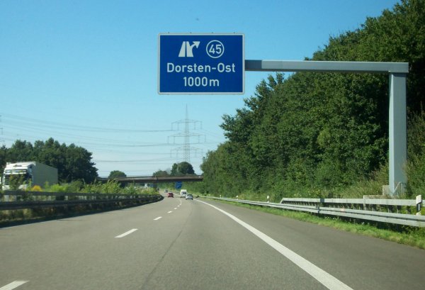 Die Abzweigung Dorsten-Ost (45) kündigt sich an