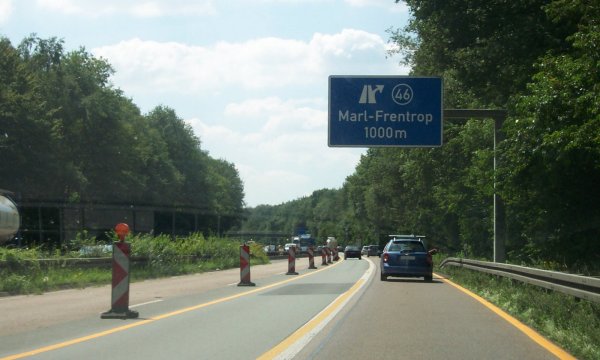 Ankündigung der AS Marl-Frentrop (46) in der Baustelleneinfahrt