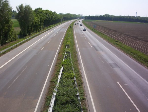 Blick von der Brücke Wieskämper Weg bei Marl-Polsum auf die Autobahn zwischen Dorsten-Ost und Gelsenkirchen-Hassel