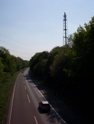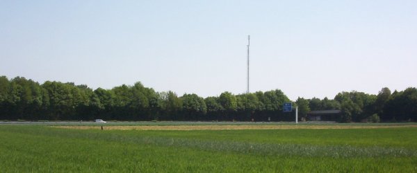 AS Gelsenkirchen-Hassel. Im Hintergrund ein Faulturm einer Kläranlage.