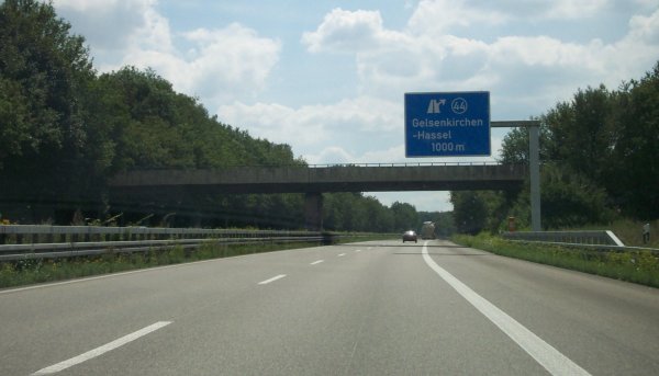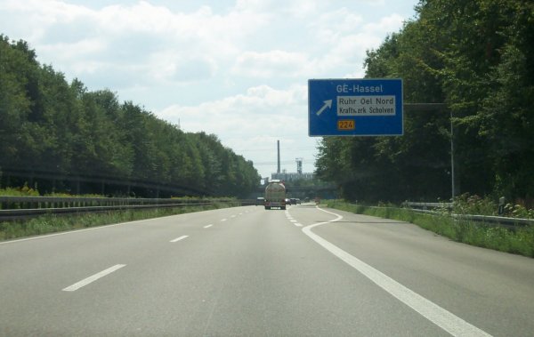 AS Gelsenkirchen-Scholven. Man beachte die rot durchgestrichene Autobahnnummer!