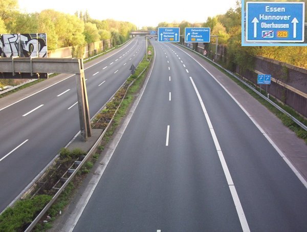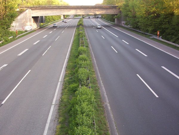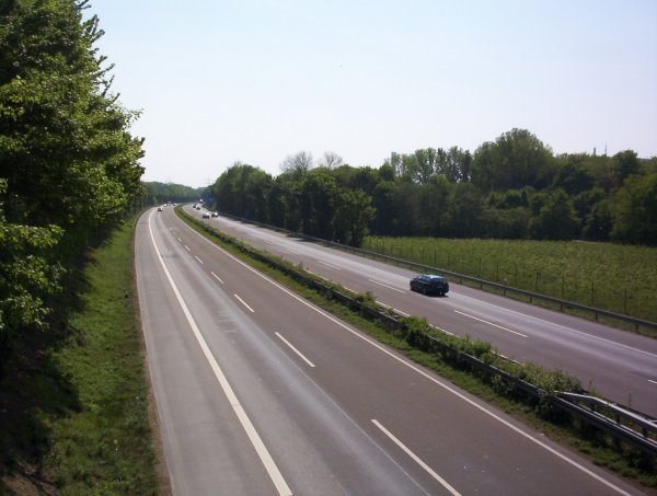Blick von der kleinen Brücke der Pawiker Straße auf die Richtungsfahrbahn Gladbeck