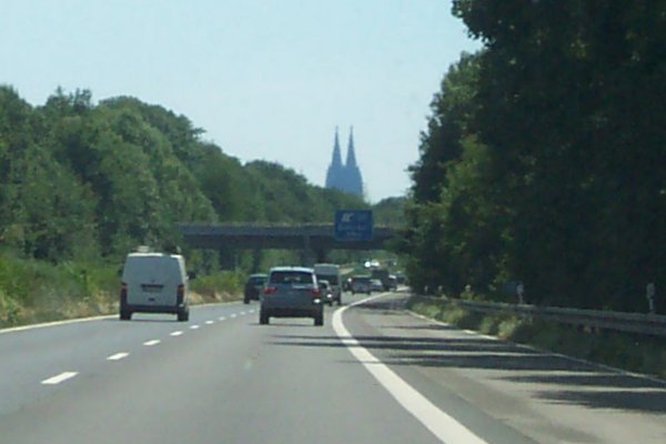 Hinter Kreuz Köln-Nord und AS Köln-Longerich. Gut zu sehen: der Kölner Dom