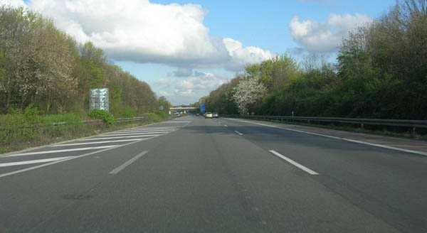 Vor der Kleeblatt ähnlichen AS Bickendorf (29). Die erste Abfahrt führt nach Bilderstöckchen, die zweite nach Bickendorf.