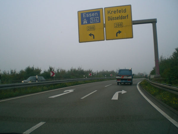 Rechts geht es nach Krefeld, links zur A 524 nach Essen bzw. Breitscheid