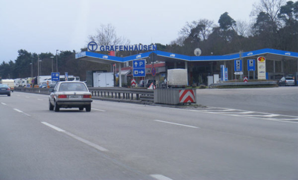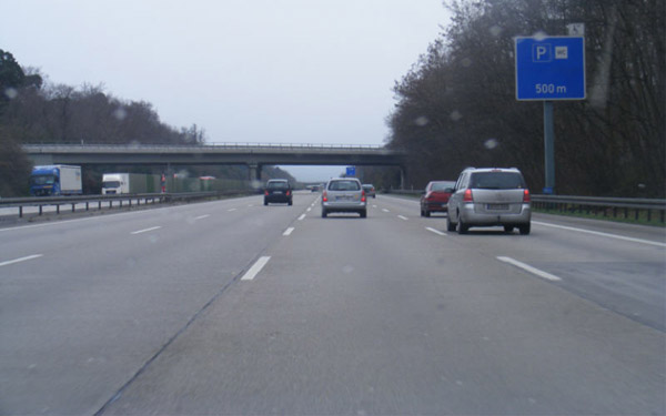 Im Bereich des Rasthofes gibt es auf der Hauptfahrbahn keinen Standstreifen