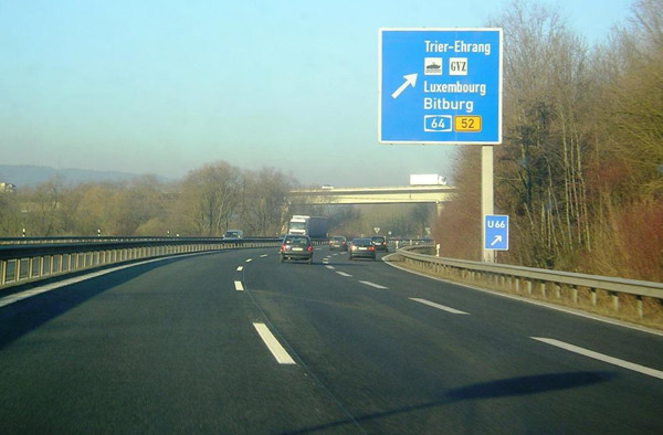 Hier mit Hinweis auf die A 64 nach Luxemburg