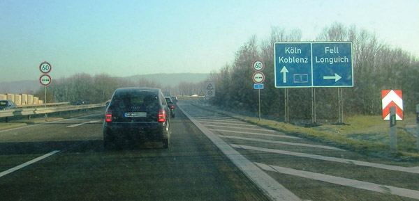 Das AD Moseltal wird nicht angekündigt, direkt nach der AS Moseltal steht dieser Vorwegweiser.