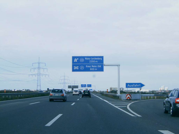 Ankündigung der AS 21 "Kreuz Mainz-Süd" und AS 20 "Mainz-Lerchenberg"