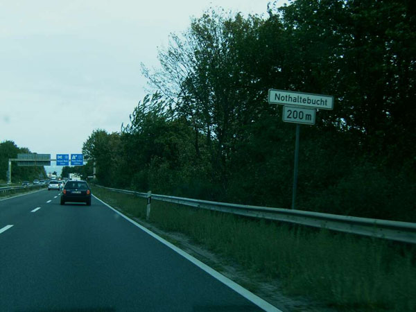 Wenn schon kein Standstreifen, dann wenigstens eine Nothaltebucht. Ab hier befinden sich die Leitpfosten übrigens wegen des nicht befahrbaren Grünstreifens nicht mehr auf der Leitplanke! weiter zu Teil 4 zurück zur Übersicht |