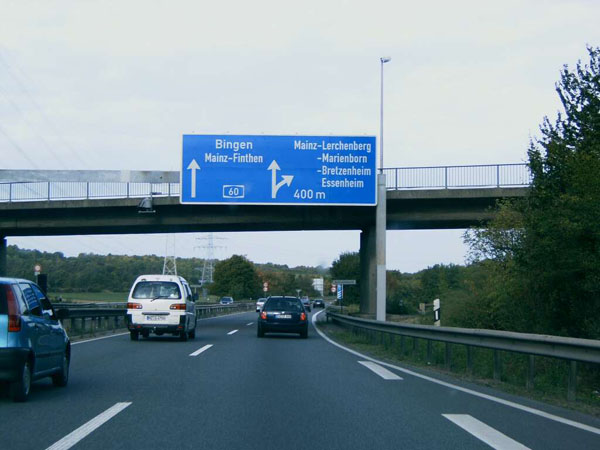 Hier endet bis auf Weiteres der sechsstreifige Ausbau der A 60: Der rechte Fahrstreifen wird im "Kreuz Mainz-Süd" zur Ausfahrt auf die B 40 nach Mainz.
