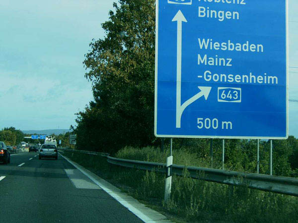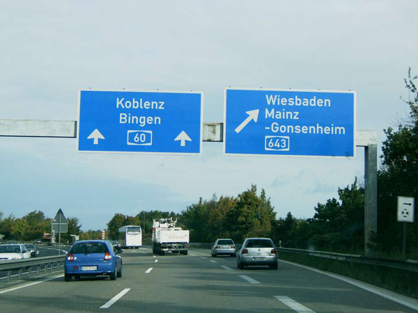 Weiter geht die Fahrt auf der A 643. Auf der A 60 sieht man eine animierte Einengungstafel. weiter auf der A 643 nach Wiesbaden zurück zur Übersicht |
