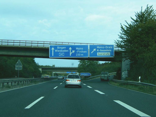 Vor der AS "Mainz-Finthen". Dieser Knotenpunkt ist als Kleeblatt mit einem Überflieger konzipiert.