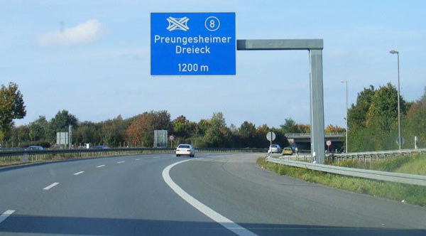 Noch im Verlauf der Anschlussstelle wird das Preungesheimer Dreieck angekündigt. Ab hier hat die Autobahn wieder übliche Breite. weiter zu Teil 2 zurück zur Übersicht |
