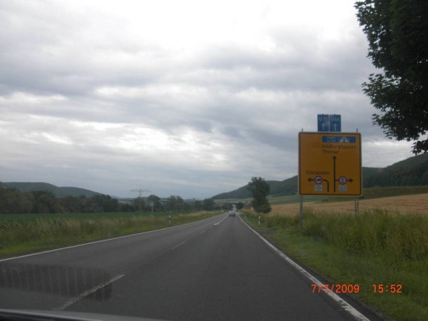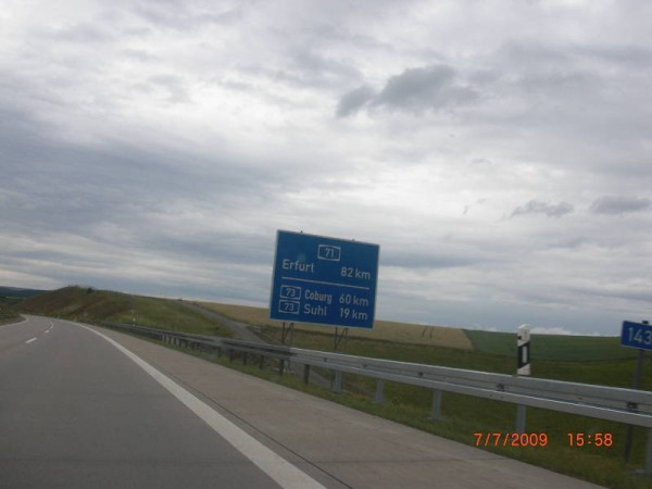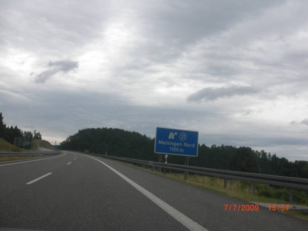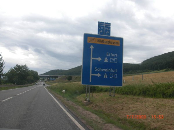 Entfernungstafel hinter Meiningen Nord, auf der man auch das 13 km entfernte Dreieck Suhl erahnen kann weiter zu Teil 2 zurück zur Übersicht |