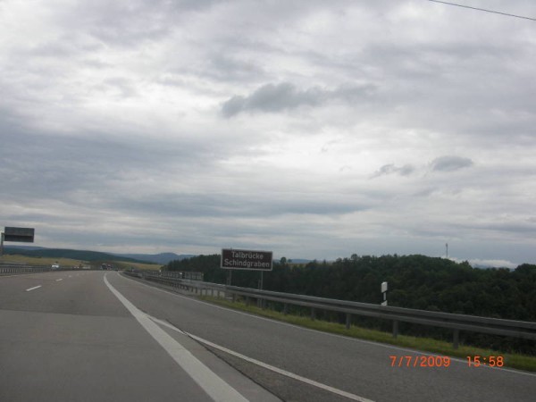 Wie bei der Anschlussstelle Meiningen Süd folgt hier gleich nach der Einfädelungsspur eine Talbrücke namens Schindgraben
