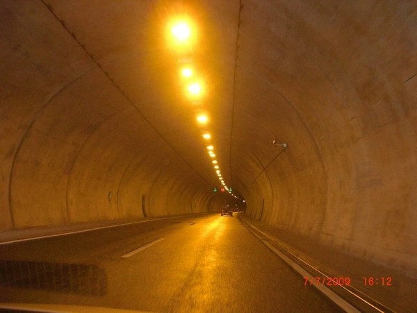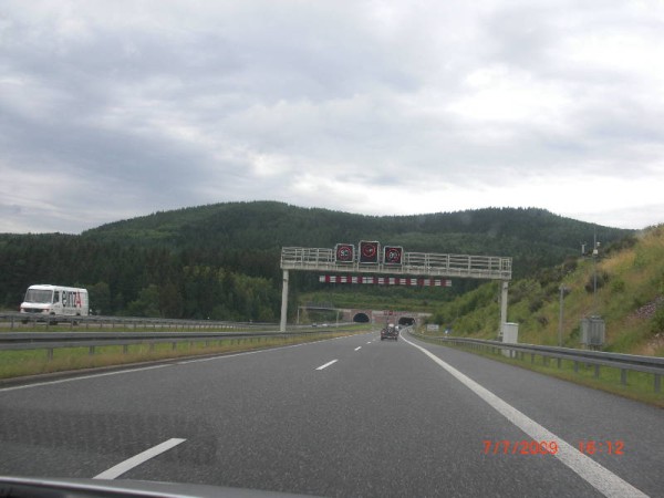 Der übliche Schilderwald eines jeden modernen Autobahntunnels folgt