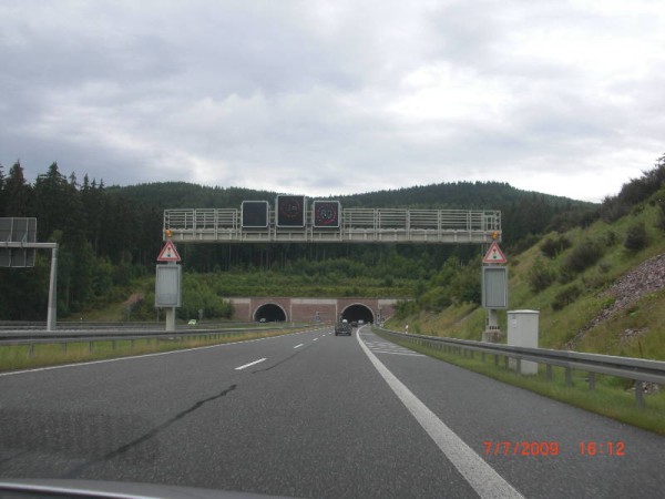 Das Dreieck Suhl kündigt sich zum zweiten mal an und verbietet Gefahrguttransporten die Durchfahrt durch die folgenden Tunnel.