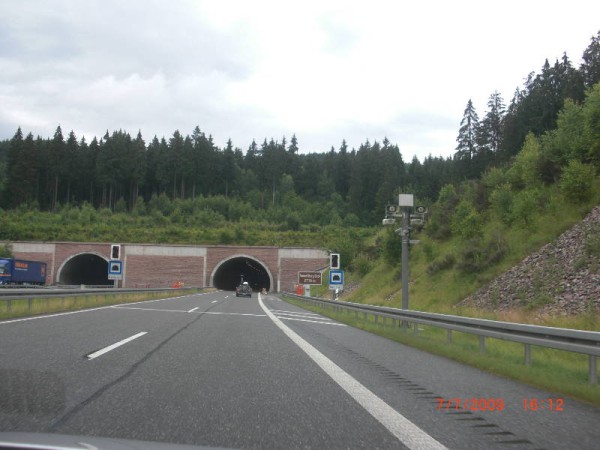 Hinweisschild auf Radarkontrollen, die allerdings viele nicht beachten und teilweise mit 120 km/h an einem vorbei rasen. Geblitzt werden diese im Tunnel ganz unbemerkt, hochmodern und ohne "Blitz"!!!