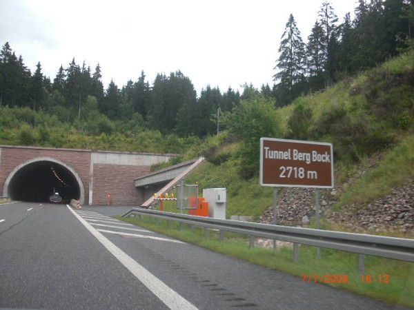 Hinweistafel und Einfahrt in den Tunnel Berg Bock
