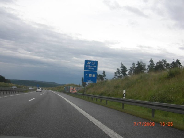 Vorwegweiser der AS Gräfenroda, der auch auf den namenlosen Parkplatz hinweist.