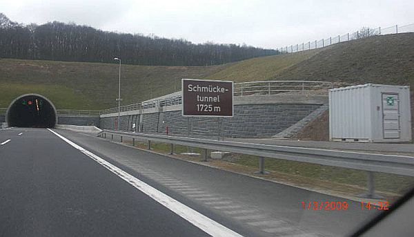 Im Tunnel. Die gesamte Beleuchtung besteht aus modernster LED-Technik. Damit ist dieser Tunnel Deutschlands erster und einzigster, der damit ausgerüstet wurde.