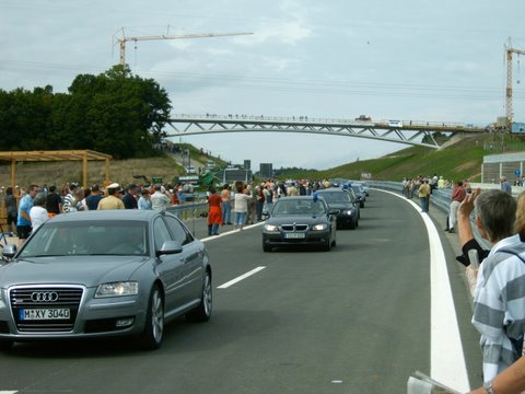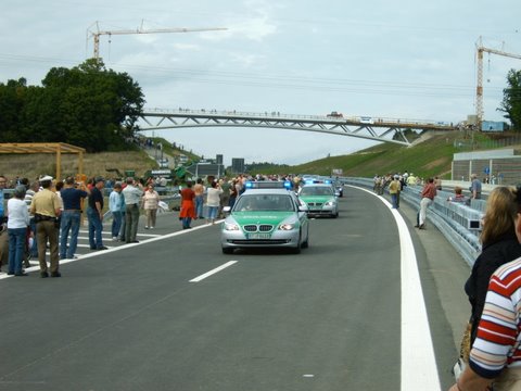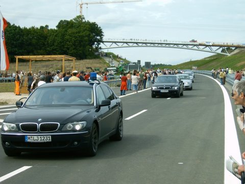 Die Kolonne - geführt von Polizeifahrzeugen - bei der Erstbefahrung