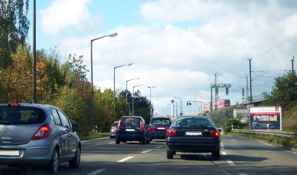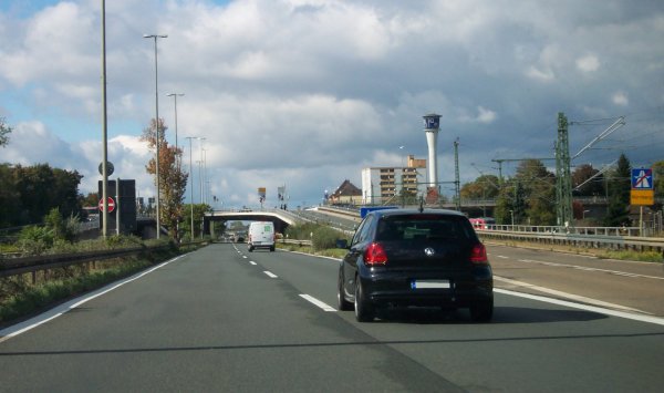 Auf dem Frankenschnellweg unmittelbar hinter der Kreuzung Rothenburger Straße