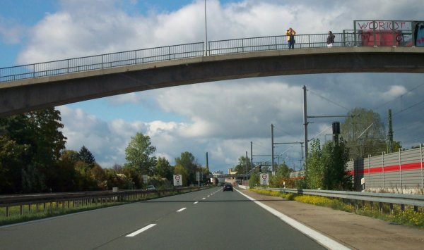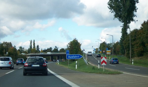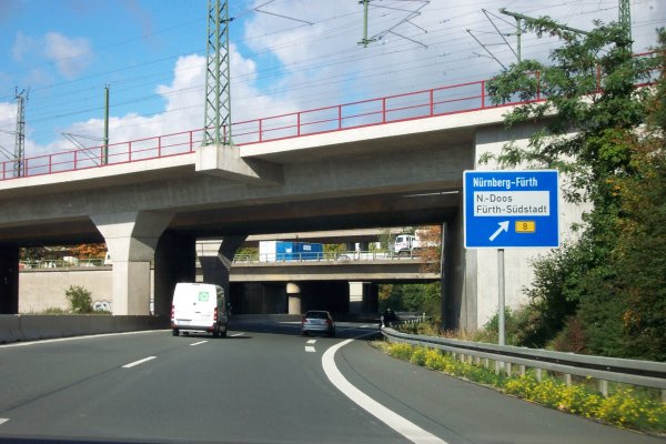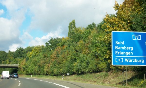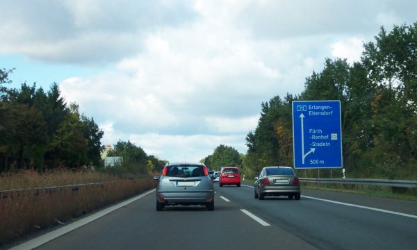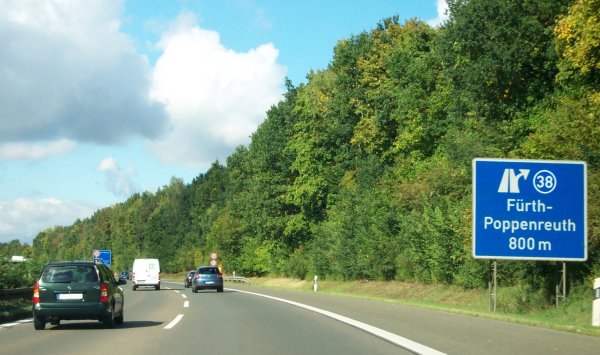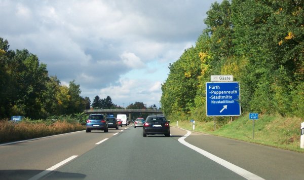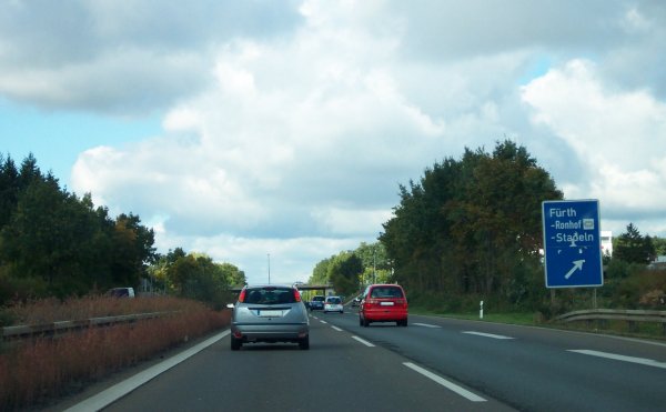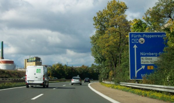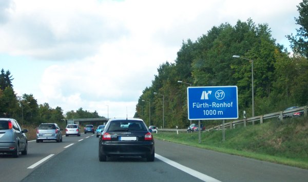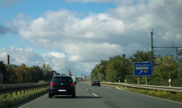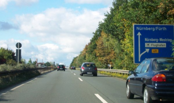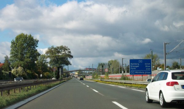 Ortsausgang Nürnberg. Hier beginnt zwar die Autobahnbeschilderung, aber der